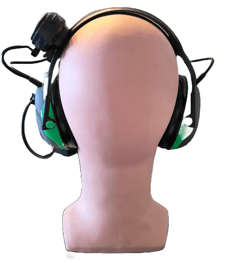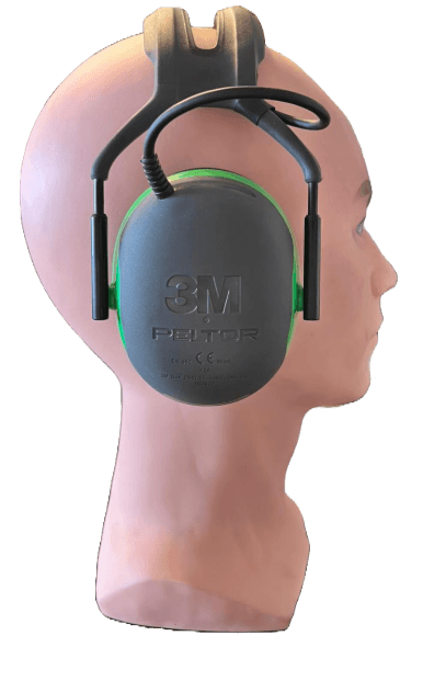 El cintillo de protección auditiva 3M Peltor X1A (por encima de la cabeza), tiene integrado unos altavoces, para escuchar a través de ellos, todo lo referente a la comunicación con otros operarios.