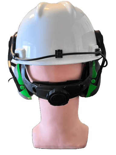 Las orejeras de protección auditiva 3M Peltor X1P5E (adosados al casco), tienen integrados unos altavoces, para escuchar a través de ellos, todo lo referente a la comunicación con otros operarios.