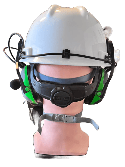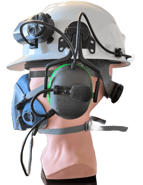 Las orejeras de protección auditiva 3M Peltor X1P5E (adosados al casco), tienen integrados unos altavoces, para escuchar a través de ellos, todo lo referente a la comunicación con otros operarios.